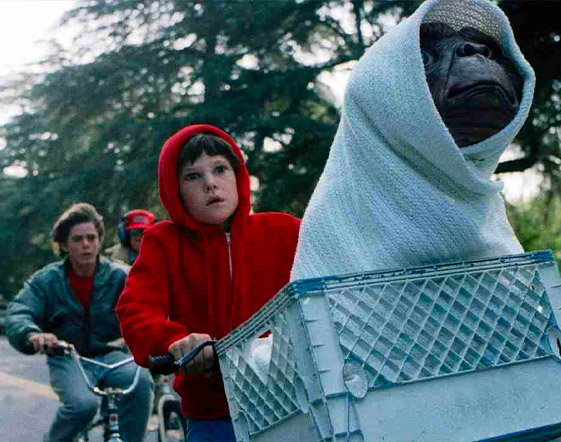 Il film racconta la storia della straordinaria amicizia tra un extraterrestre bloccato sulla Terra e un bambino di nome Elliot (l’undicenne Henry Thomas che la spuntò su 300 aspiranti al ruolo). Con l’aiuto del fratello maggiore Michael (Robert MacNaughton) e della sorellina Gertie (Drew Barrymore), il ragazzino aiuterà E.T. a tornare nel suo pianeta evitando il governo (a bordo della fiammante BMX rossa).