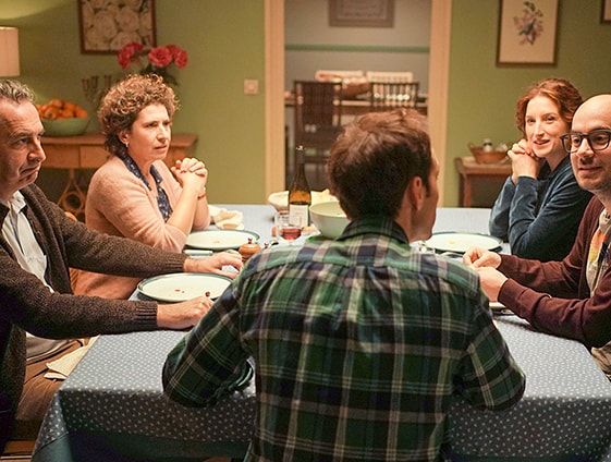 Nel secondo caso c’è Adrien che parla e fa avvertire in ogni frase il segno della scrittura dei dialoghi. Innanzitutto nella disposizione della sua famiglia a tavola (lui da solo, i genitori da un lato, la sorella e il futuro marito dall’altro), è come un capocomico invisibile che organizza il ritmo delle battute con gli altri personaggi. Poi è lui stesso che ribalta le situazioni e alimenta il contrasto continuo tra realtà e immaginazione.
