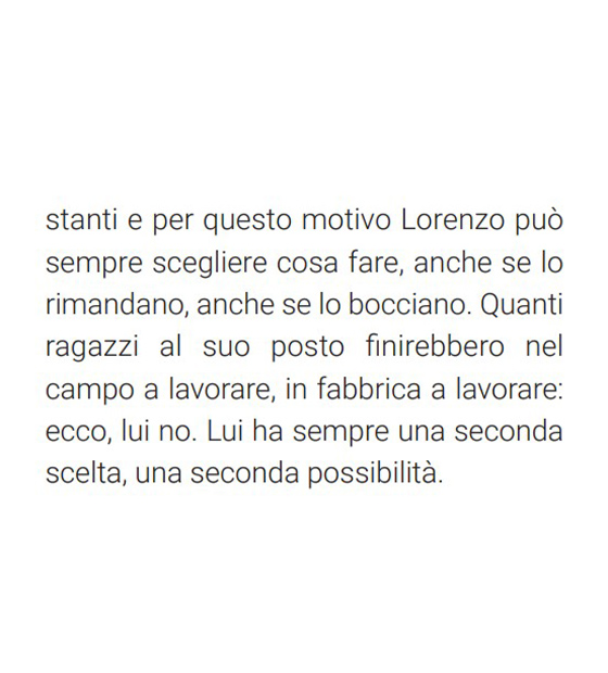 Vorremmo che tutti i poveri del mondo studiassero lingue per potersi intendere e organizzare fra loro. Così non ci sarebbero più oppressori, né patrie, né guerre… Non a caso, su una parete della scuola c’è scritto grande “I care”. È il motto intraducibile dei giovani americani migliori. “Me ne importa, mi sta a cuore”. È il contrario esatto del motto fascista “Me ne frego”».