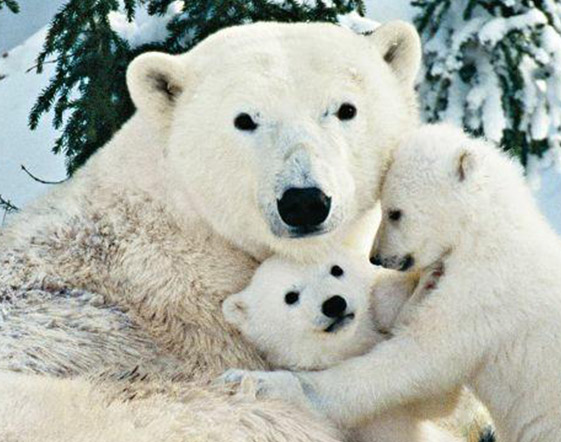 Durante l’inverno gli orsi non si vedono, riposano beati al calduccio in attesa della primavera. Non possiamo dire lo stesso dei cugini del Nord: i grandi orsi polari, infatti, abitano la zona del circolo polare artico, un mondo fatto di freddo, neve e ghiaccio, dove l’inverno dura molto a lungo. Sovrani di quell'ambiente, sanno essere genitori amorevoli e allo stesso tempo cacciatori spietati. Grazie alle loro enormi zampe anteriori, che usano come fossero remi, sono capaci di nuotare benissimo e per lunghe distanze, tanto da essere chiamati “orsi del mare”.