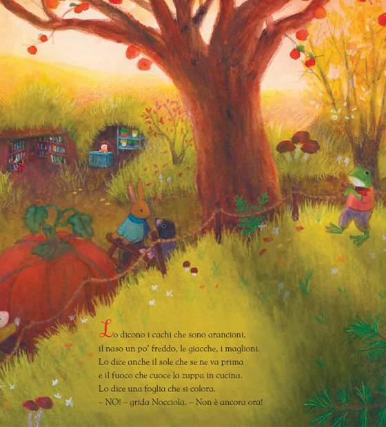 Il profumo dolce dell'autunno scritto da Giuditta Campello e con le illustrazioni di Arianna Cicciò, edito EL racconta la storia della dolce Nocciola che, triste e imbronciata, si appresta a tirare fuori cappelli e sciarpe e a fare raccolte per la stagione più fredda. A lei l'autunno non piace granché, non ci trova nulla di bello. Eppure esplorando attorno e guardando la natura che si trasforma, sempre insieme alla sua famiglia, riuscirà ad apprezzare i cambiamenti di panorama, come di prospettiva sull'estate che va via.
