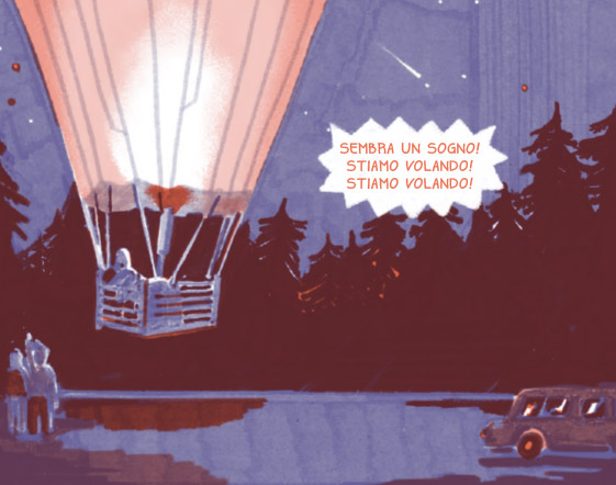 La prima cosa che ho pensato dopo aver letto questa graphic novel è stata: accidenti che fortunata che sono! E al posto dei protagonisti della storia che cosa avrei fatto? Quanto è importante per me la libertà e quanto sono disposta a rischiare per ottenerla o conservarla? Ma facciamo ordine e partiamo dall’inizio. In questo libro emerge chiaramente che noi siamo non solo il frutto della nostra storia, ma soprattutto artefici del nostro destino! Rivolgendo lo sguardo indietro negli anni e sfogliando le pagine colorate dai toni dell’arancio e del viola, ecco che ci ritroviamo nel 1979 a Berlino, città divisa in due identità ed entità diverse da un muro invalicabile lungo 175 km, che separa famiglie e visioni del mondo. Per molti di quelli che si sono ritrovati costretti ad abitare a Berlino est, giovani o adulti che fossero, ciò che nascondeva quel muro era l’ideale di una vita serena e felice dove ognuno aveva la libertà di essere, fare e soprattutto pensare ciò che voleva, al di là della “dittatura politica” a cui tutti soccombevano e con cui spesso si collaborava soprattutto per paura. Anche solo avvicinarsi al muro metteva in pericolo chiunque. In questa storia, solo un palloncino può riuscire ad attraversare il muro, come quello che segue con lo sguardo Doris, bimba curiosa, che dopo qualche pagina incontreremo come giovane donna determinata alla fuga verso la libertà, pronta a coinvolgere amici e colleghi in un’avventura che cambierà definitivamente le loro vite.