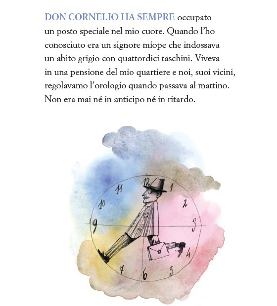 Il racconto è accompagnato e sostenuto dalle magnifiche illustrazioni di Mariachiara di Giorgio, Premio Andersen italiano per l’illustrazione 2022, immagini in cui emerge l’attenzione per i dettagli curiosi, una ninfa ironicamente raffigurata come un Bacco, echi surrealisti e metafisici, tra cui si nota un’ispirazione in particolare, che non vi rivelo e un uso del colore che ben rende il racconto di trasformazione di Don Cornelio.