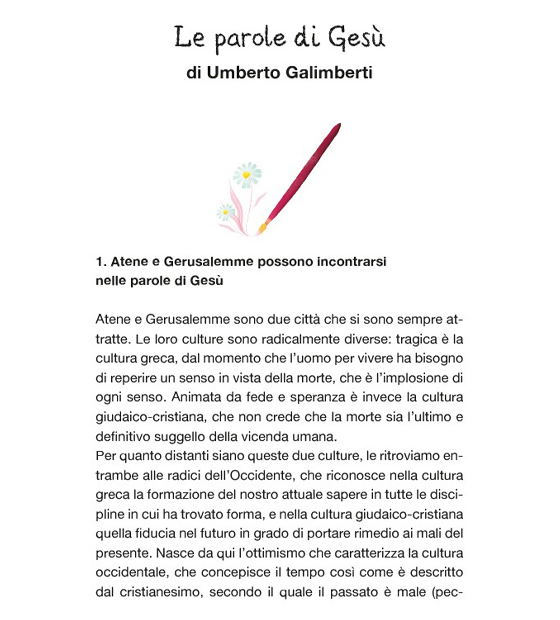 Parole semplici che aiutano i ragazzi e le ragazze a capire la sua vita, le sue scelte e il suo operato in maniera aperta e non obbligatoriamente legate alla religione.
