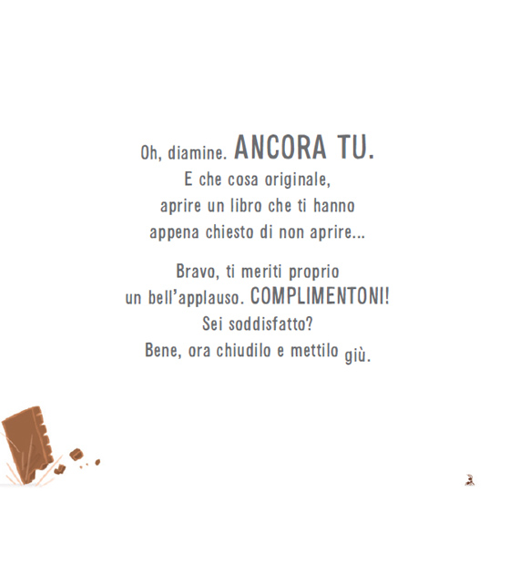 Oh, diamine. ANCORA TU. E che cosa originale, aprire un libro che ti hanno appena chiesto di non aprire…