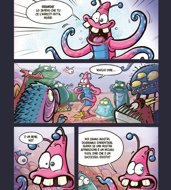 Roba da mostri è una storia bellissima, piena di temi importanti come l’accettazione della diversità, la paura, la richiesta d’aiuto che spesso i bambini non sanno esprimere. E poi è un libro spassoso, ricco di battute complesse talvolta, ma anche di strutture semplici e immediate. Resta un'esperienza di lettura anche per gli adulti che ritrovano due autori d’eccezione, figure centrali del mondo del fumetto. Infatti, le tavole che compongono questo libro sono memorabili, realizzate con uno stile fortemente comunicativo nella sua attenzione al dettaglio.