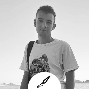 Studente di arti figurative, appassionato di libri e fumetti, insegue il sogno di scrivere e illustrare storie per lavoro. Tutto ciò che serve sapere della sua personalità è nei suoi disegni
