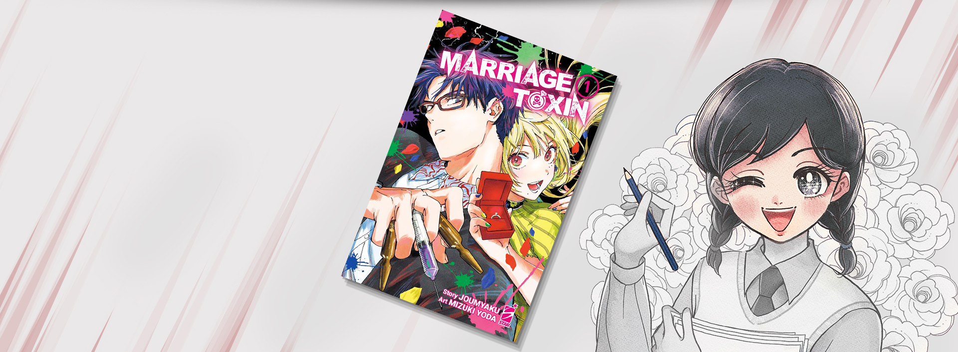 Ecco il pretesto da cui cominciano le avventure di Marriagetoxin, sicuramente originale, forse non molto solido, ma diamo tempo alla serie di ingranare anche nel nostro paese, dove la pubblicazione del secondo volume è prevista il 9 aprile. Se da una parte ci aspettiamo una maggior delineazione della società e del sottomondo di sicari di cui fa parte il nostro protagonista, dall’altra ci rendiamo presto conto che ogni missione diventa pretesto per trovare moglie a Gero: il rapporto tra lui e Mei Kinosaki si stringerà col tempo, man mano che le lezioni di Mei delineeranno un percorso di crescita che permetterà a Gero di acquisire più fiducia in se stesso e scoprire il suo vero fascino.