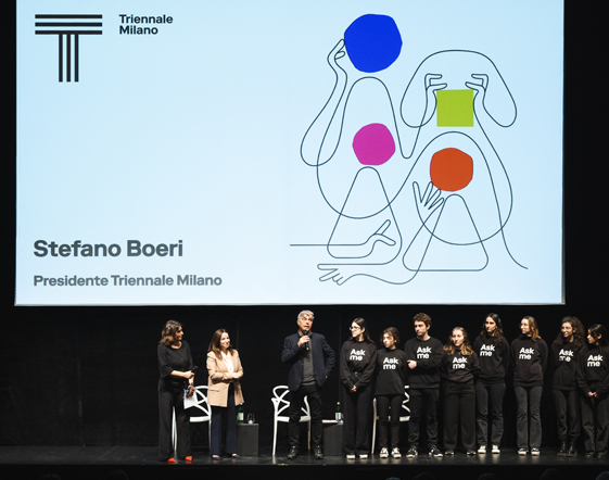 Una programmazione culturale all’altezza di una ricorrenza tanto importante e che titola Design the Future, perché, oltre a inseguirlo, il futuro si crea, si costruisce e si plasma. Ad aprire l’incontro, moderato dalla giornalista Marianna Aprile, non poteva che esserci il presente di Triennale, il presidente Stefano Boeri e la direttrice generale Carla Morogallo, accompagnati, però, dal domani dell’istituzione: una schiera di ragazze e ragazzi giovanissimi che cominciano a lavorare e a collaborare con questo mondo fatto d’arte e responsabilità.