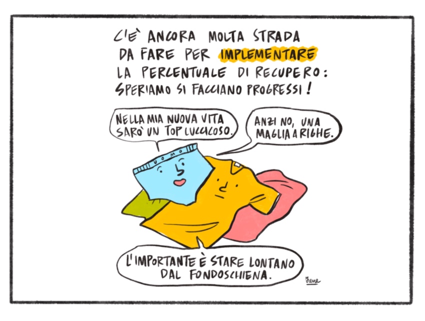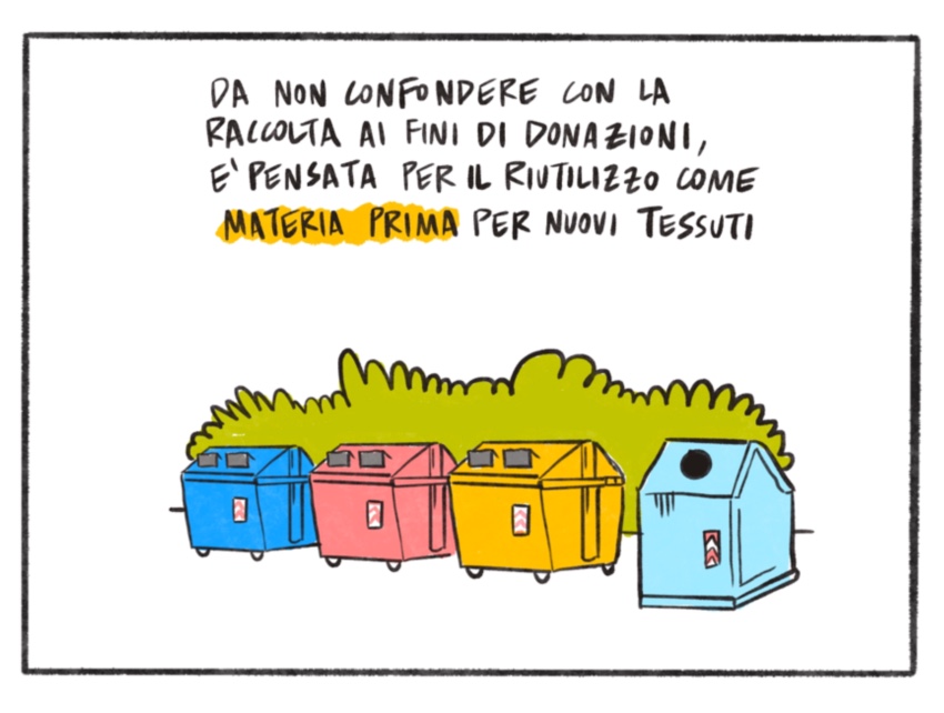 No, non si tratta di raccogliere i vestiti ai fini di donazioni. Per differenziata tessile si intende riciclare per riutilizzare il capo come materia prima per nuovi tessuti. C'è ancora tanta strada da fare, ma siamo fiduciosi!