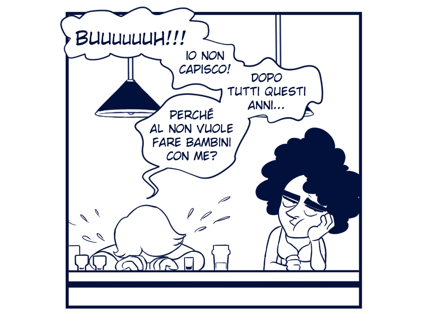 Di fronte a una birra si confida, si sfoga, piange. Quale sarà mai la ragione per cui Al non vuole diventare papà? La risposta non sembra arrivare.