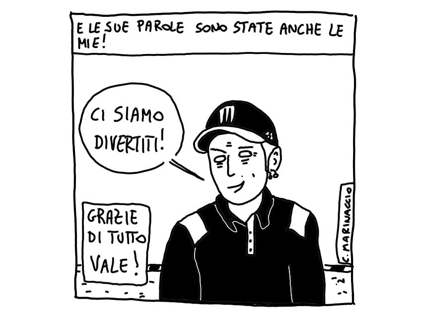Quando un campione saluta, una parte di noi lo segue oltre la curva, fino a scomparire. Nel caso del "Dottore", di "Rossifumi", del numero 46 più celebre di tutti i tempi, i tantissimi che ne hanno amato il virtuosismo in sella e la strafottente ironia fuori dal paddock possono solo sorridere, ricordando le emozioni che hanno provato nel corso di una carriera lunga quasi venticinque anni e costellata - come si conviene ad ogni vero romanzo popolare - da colpi di scena, cadute e risollevamenti, tradimenti e riconciliazioni, sempre col gas generosamente aperto. Da oggi il moto GP sarà senz'altro un po' più povero, e bisognerà cercare un modo per ricordare sempre che quando si tratta di correre e piegare in curva verso il traguardo più ambito, quello della passione dei propri fan, Vale tutto.
