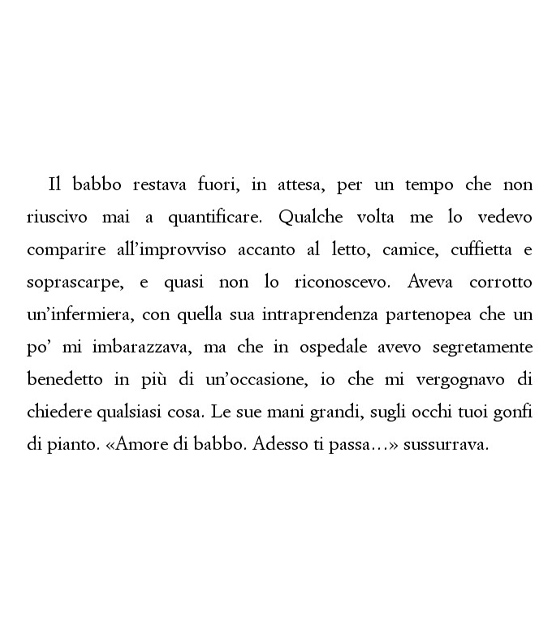 Per lungo tempo ho pensato che la mia malattia fosse incompatibile con la tua, che i nostri corpi malati non potessero convivere e, soprattutto, che non potessero parlarsi. Invece ogni comunicazione continua a passare attraverso il corpo, anche se malato. Anzi, oso dire in virtù del suo essere malato.
