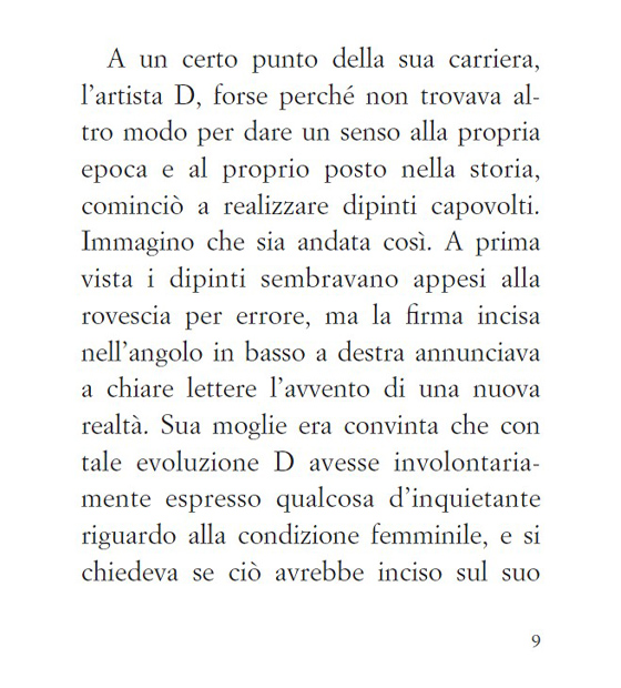 L’autrice racconta un’esperienza di distacco dalla realtà, dopo un’aggressione subita, come se il suo doppio – caro tema dell’arte – prendesse vita lì, in tutta la sua oscurità, in tutto il suo chiedere spazio e differire dalla forma vivente della sua essenza. Come se la sua controfigura fosse stata colta all’improvviso da quella violenza, dalla sua impossibilità di previsione e vibrasse nella forza di questo atto.
