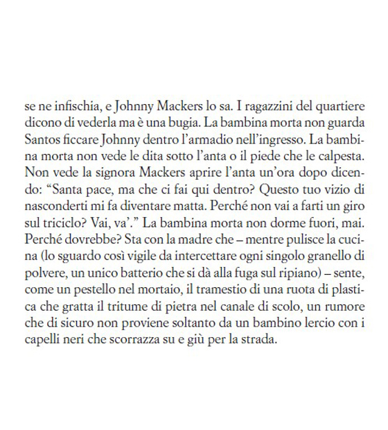 I morti continuano a vivere con semplicità. Sono sull’elenco del telefono. Ricevono la posta. Le loro parrucche riposano sulle teste di polistirolo in fondo agli armadi. I loro letti sono rifatti. Le loro scarpe sono dappertutto