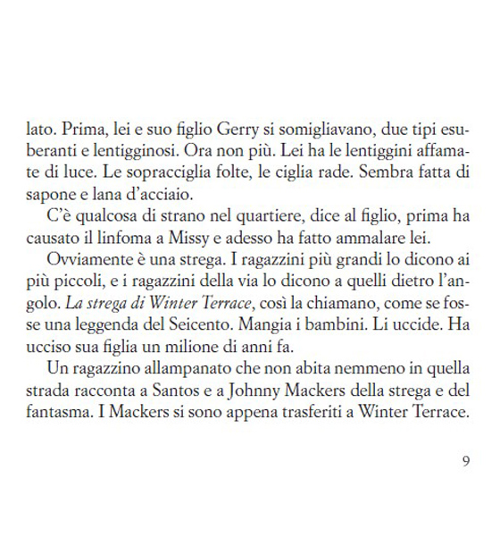 In questa storia Grace, conosciuta come la strega di Winter Terrace, ancora non ha superato la morte della figlia Missy, e vive immobile in una casa polverosa dove la presenza-assenza della piccola viene avvertita come un’umidità liquida che si attacca alla pelle. A rimetterla in moto sarà l’incontro con un bambino fin troppo sveglio.