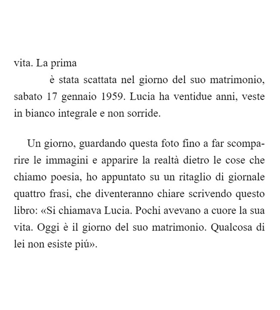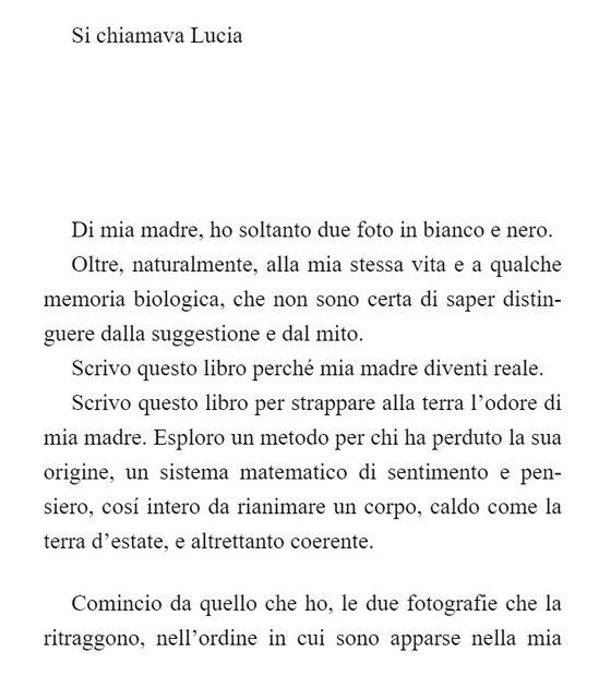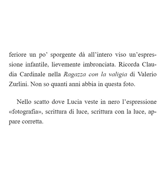 L’amore di Lucia per me, a me in persona sicuramente e semplicemente destinato, sta nel non avermi portata con sé nella morte, sta nel dove non mi hai portata e nel suo avermi riconsegnata alla vita