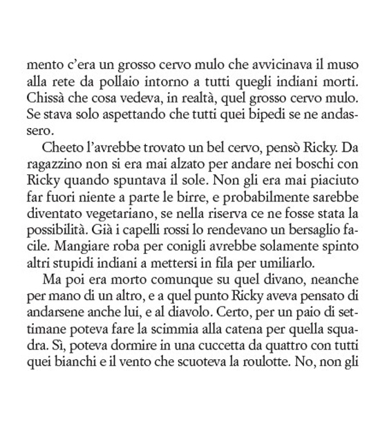 E poi c’è Lewis, che tormentato più di tutti dal senso di colpa per una bravata che i quattro amici ricordano ancora dopo dieci anni come il «Classico del Ringraziamento», decide di andarsene dalla riserva per sposare Peta, una donna bianca, con cui conduce una vita serena e anonima.