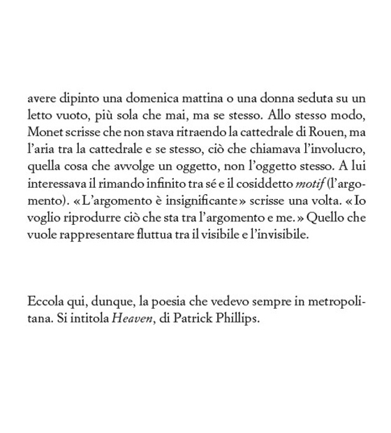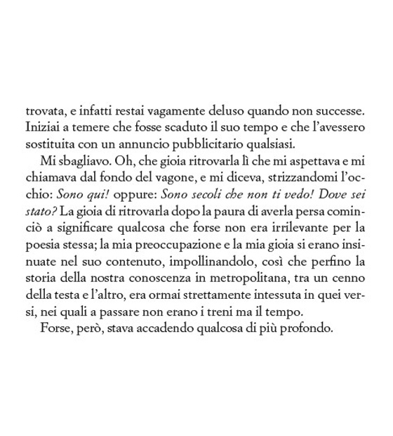 Sì, perché queste pagine – che non si possono descrivere, ma da cui bisogna farsi attraversare – ci presentano un conto molto veritiero e lampante: non viviamo mai il momento. Per quanto ci raccontiamo di essere nell’hic et nunc, in realtà non ci siamo mai. Siamo sempre in un irrealis mood, nella fierezza sconfitta del nostro essere uomini irreali, sempre vibranti in un’essenza che non rispecchia quello che viviamo adesso.