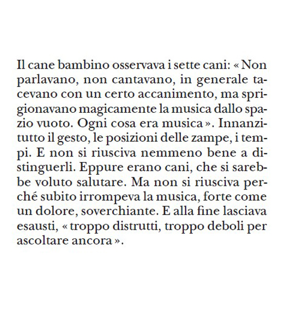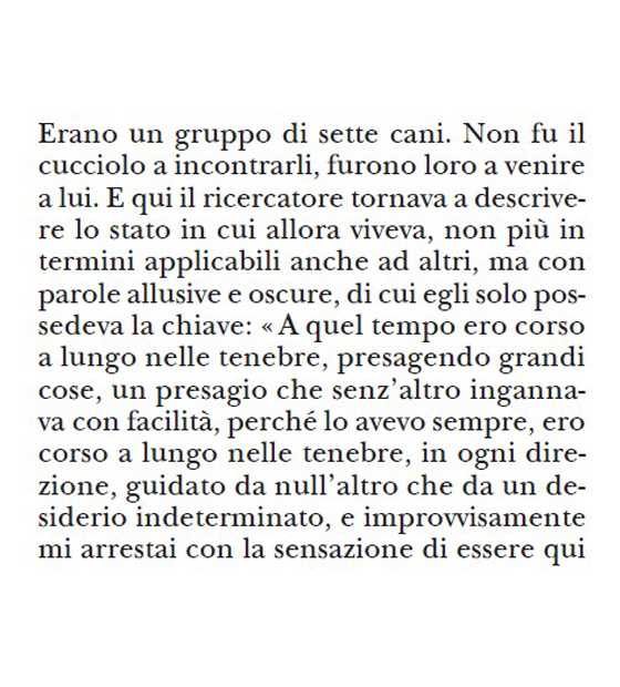 Per esempio, quando scrive che c’è quel «cane che indaga sui cani – e non appartiene più alla loro comunità», si capisce che non sta parlando del racconto di Kafka, o che questo gli serve casomai per dire altro. Oppure, quando, parlando di Josefine, che è capace di cantare anziché fischiare come fanno tutti gli altri topi, e che fa arte anziché arrabattarsi nell’efficienza e nella praticità quotidiane, scrive che «Tutti sapevano, ovviamente, che Josefine non salvava nessuno». C’è, insomma, qualcosa di umano che Calasso cerca di far emergere da questi racconti animali. Qualcosa che, appunto, ha a che fare con l’inadeguatezza e la capacità di stupirsi.