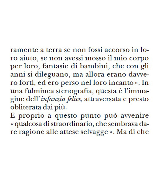 Mi godevo una narrazione che emanava entusiasmo, affetto, profondità, ma che manteneva la semplicità e la meraviglia delle storie raccontate, tramandate di voce in voce sino ad arrivare a quella forma. A distanza di anni rileggo Calasso, che parla di Kafka e dei suoi racconti meno noti, i primi e gli ultimi, che soprattutto ama Kafka, e vedo che il mio stupore non è cambiato. Forse – anzi, di sicuro è così – perché neppure quel modo di scrivere da cantore, intellettuale, filosofo o sacerdote che sia, alla fine, in Calasso, è mai cambiato.