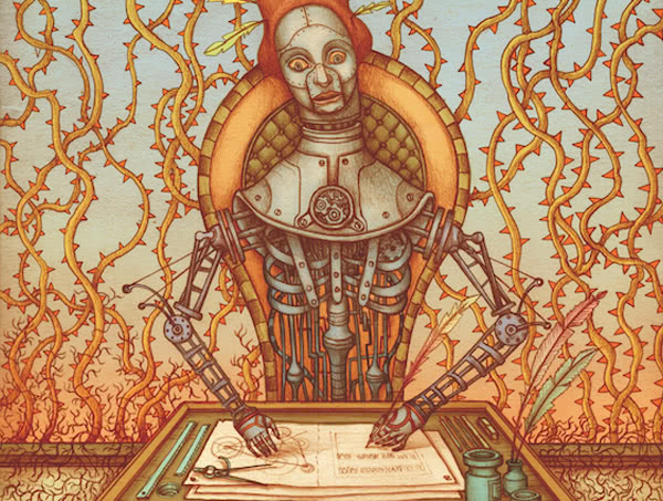 Illustrazione tratta dal libro "Viaggio nel fantasmagorico giardino di Apparitio Albinus" di Claudio Romo, Logos, 2016