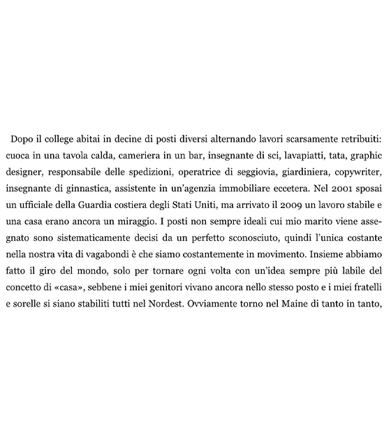 Tutto comincia con la descrizione di una città. È così dettagliata che trasuda un amore incondizionato: la si conosce a menadito, un mondo in miniatura di cui si sanno le pieghe più nascoste, dagli alberi alle anse del fiume Androscoggin, alle ciminiere della cartiera. Perché Mexico, Maine, è «la vita come dovrebbe essere», così recita il cartello che accoglie i visitatori all’ingresso dello Stato, e questa perla di cittadina ne è l’esempio più riuscito. Kerri Arsenault, a partire da questa città da cui tutto comincia, ha uno scopo preciso: indagare le proprie radici, risalendo il passato come un salmone con la corrente fin dove riuscirà.