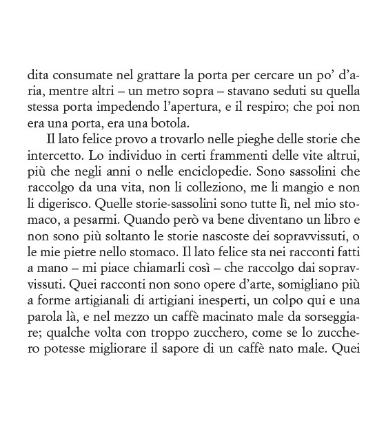 Non si accoglie per religione, credo, pietà o fede. Non si accoglie neanche per convenienza o ragionamento. In fondo non si accoglie neanche perché ne hanno diritto, o pensiamo ce l’abbiano. Si accoglie perché sono esseri umani, e noi siamo esattamente quella stessa cosa che sono loro. Perché in qualche modo stiamo affogando anche noi, insieme a loro, ogni volta in mezzo al mare.