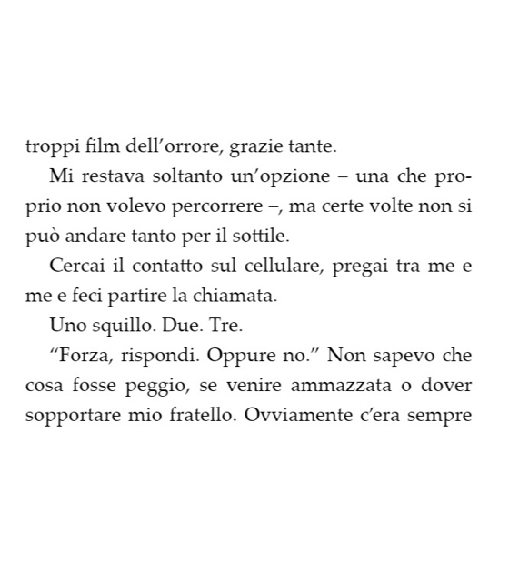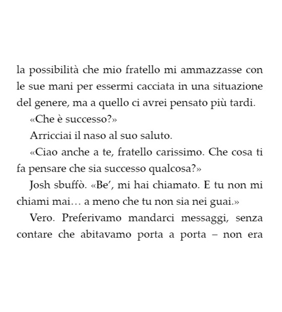 Pensato per un pubblico new adult, è in realtà un romanzo adatto a chiunque voglia immergersi nel racconto di un amore travolgente ed emozionante, su cui, però, aleggiano fantasmi del passato, con vecchi incubi che riaffiorano e tormentano i protagonisti.
