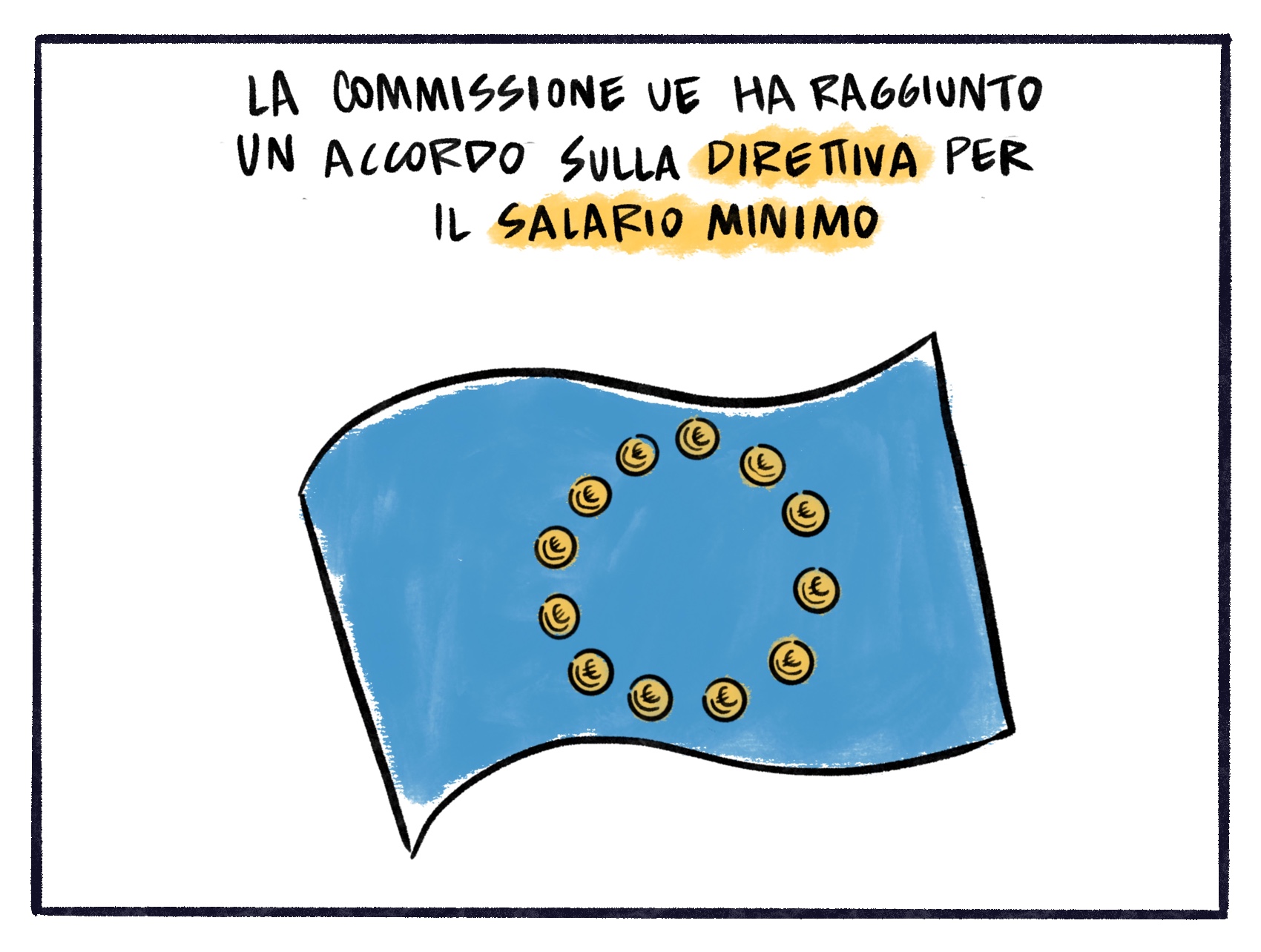 Nella vignetta di oggi, Irene Coletto ci parla di salari minimi e lavoro: e se lavorassimo vista mare?